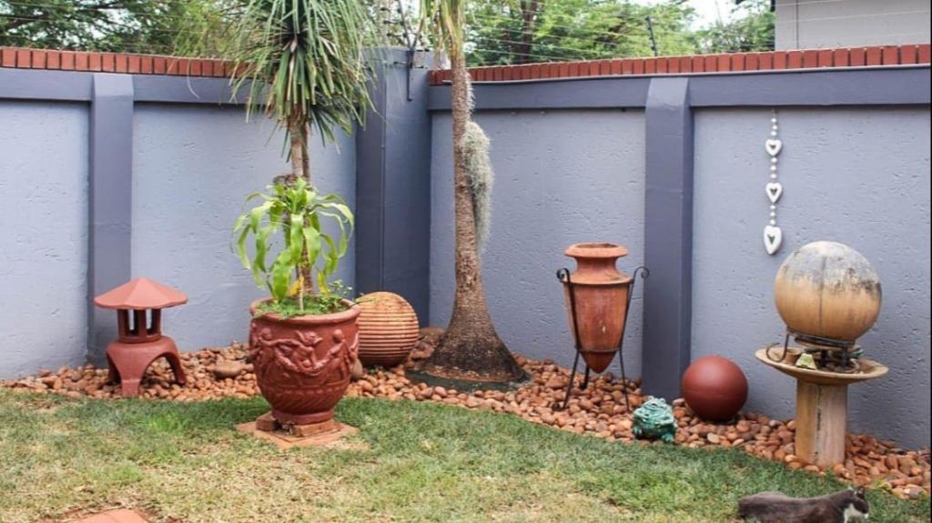 | Description: | Feel at home and safe in this charming complex with 8 lovely townhouses. Features include automated gate, Walls around complex and electric fence. The house, size 165 square m, is spacious and comfortable. The double garage is automated and with door to house, as well as laundry facilities. One covered parking and guest parking on premises. The erf is private at the back, with paving, shrubs and lawn Courtyard with basin and clothesline Water tank with pump.