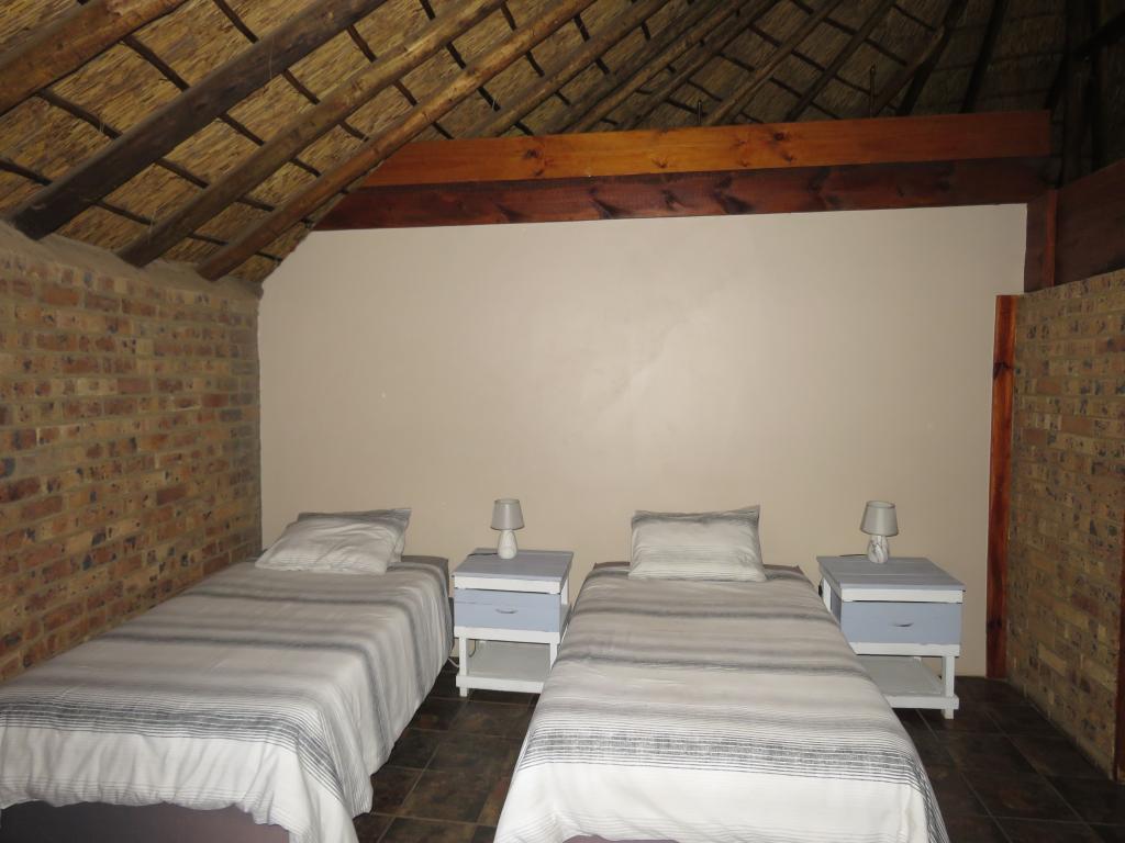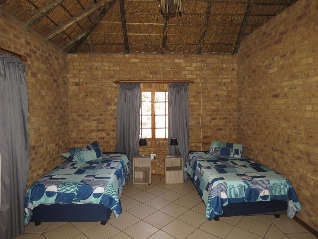 Wooden Cottage: one bedroom bathroom Wooden office outside: Water: Strong borehole with enough water for the garden, trees, and the game. Game: numbers may vary Blesbok 11 Impala 9 Nayala 3 Copper Wildebeest 6 Ostrich 7 Emu 2 European Bush pig crosses 40 The game viewer is also included in the price. Escom: There is a point The property is equipped with a 15 kva Solar system that is more than sufficient Then also a big shed that can be locked Fencing: Game fenced Pecan nut trees x 80 in production Enough Citrus trees The seller is not registered for VAT, so transfer duty will be payable This is a nice property with enough infrastructure, and it is maintained very well.