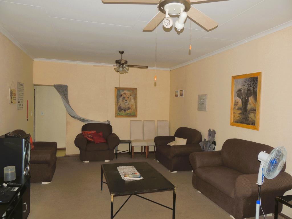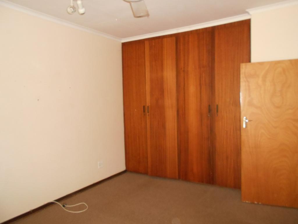 | Description: | This homely flat offers more than enough space to grow and live. This apartment is nestled in a quiet street, and has a small, manageable garden. Water tank and pressure pump. Parking: Double garage with storage space. Carport in front of garage. Stoep with burglar bars Open plan lounge and dining room Kitchen with solid wood cabinets, electric stove, laundry and open pantry Courtyard with basin Two spacious bedrooms with ceiling fans and build-in cupboards. One bathroom This unit offers true value for money. |