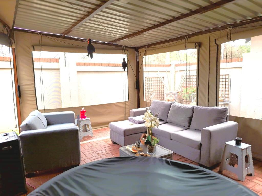 | Description: | Feel at home and safe in this charming community with 8 lovely townhouses. Features include automated gate with phone access, perimeter walls and electric fence. The building, size 165 square m, is spacious and comfortable. The double garage is automated and with door to house. Also, with laundry facilities and ample storage space. This home boasts with 6 solar panels, 5 KVA inverter and lithium battery. The solar system is connected to all power outlets, except for the stove, geyser and oven. The erf is walled with paving and lawn Courtyard with basin and clothesline A 2200 litre water tank with pump keeps the water flowing. Properties inside: Tiled floors, roof fans and air conditioning in master bedroom and family room Spacious, open plan lounge and dining area Family room with sliding doors on 3 sides This area connects with the lovely entertainment area, with canvas sides Kitchen with granite tops, electric hob and eye level oven. Master bedroom en suite with build-in cupboards, air conditioning & roof fan Second and third bedroom with build-in cupboards and roof fan Guest bathroom Blinds and curtains included in the sale. Complex levies include: complex and security maintenance, insurance on building, weekly gardener and refuse removal. Take a step to joy & independance! |