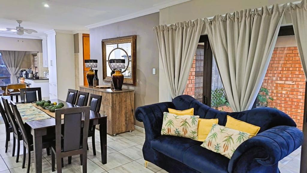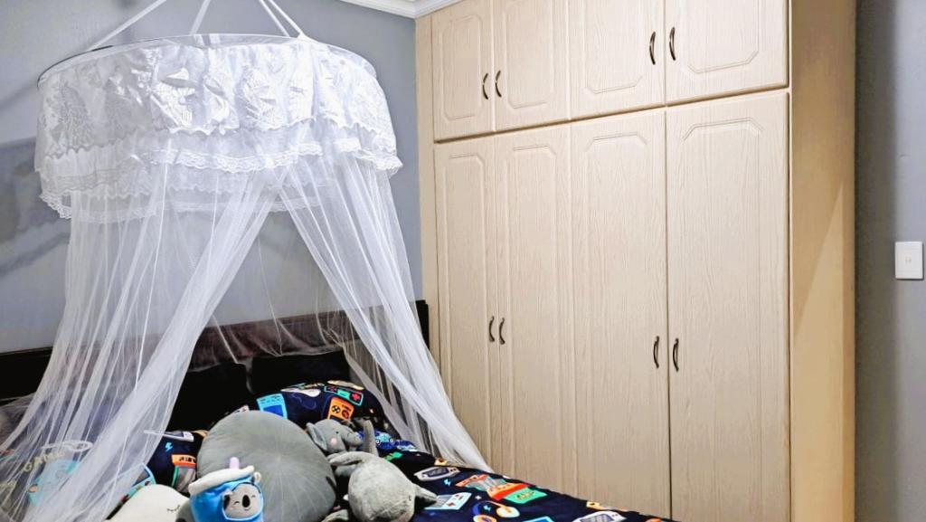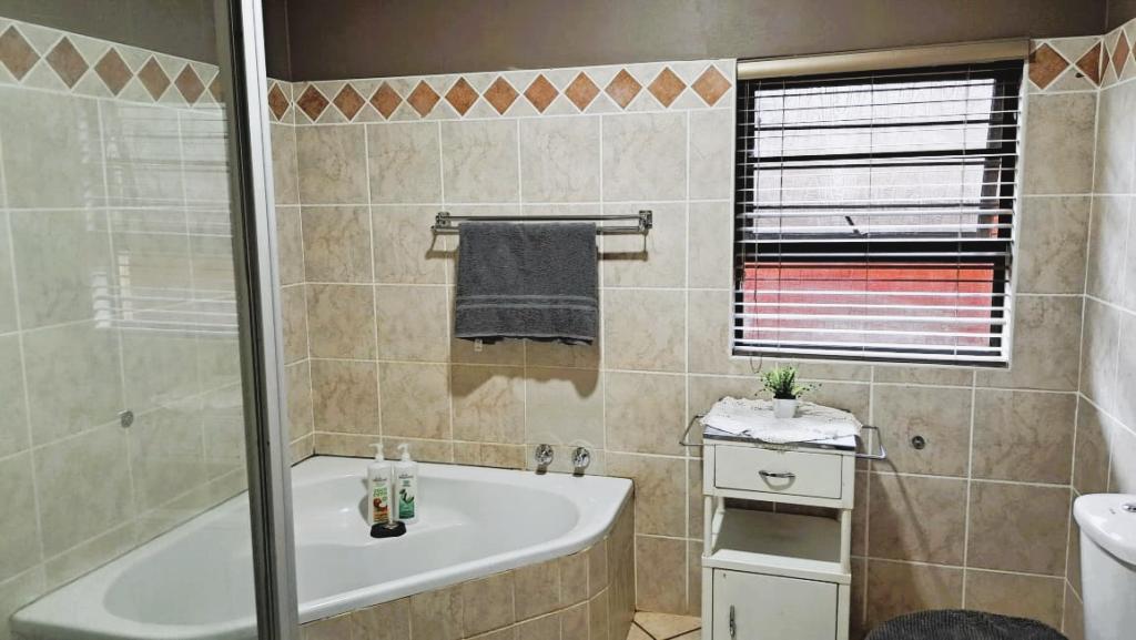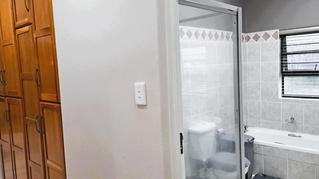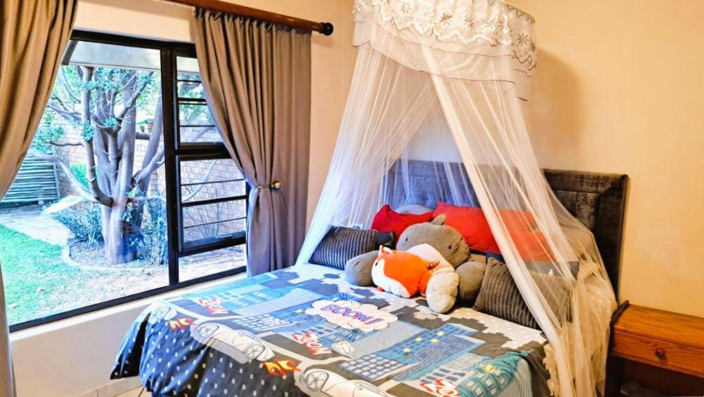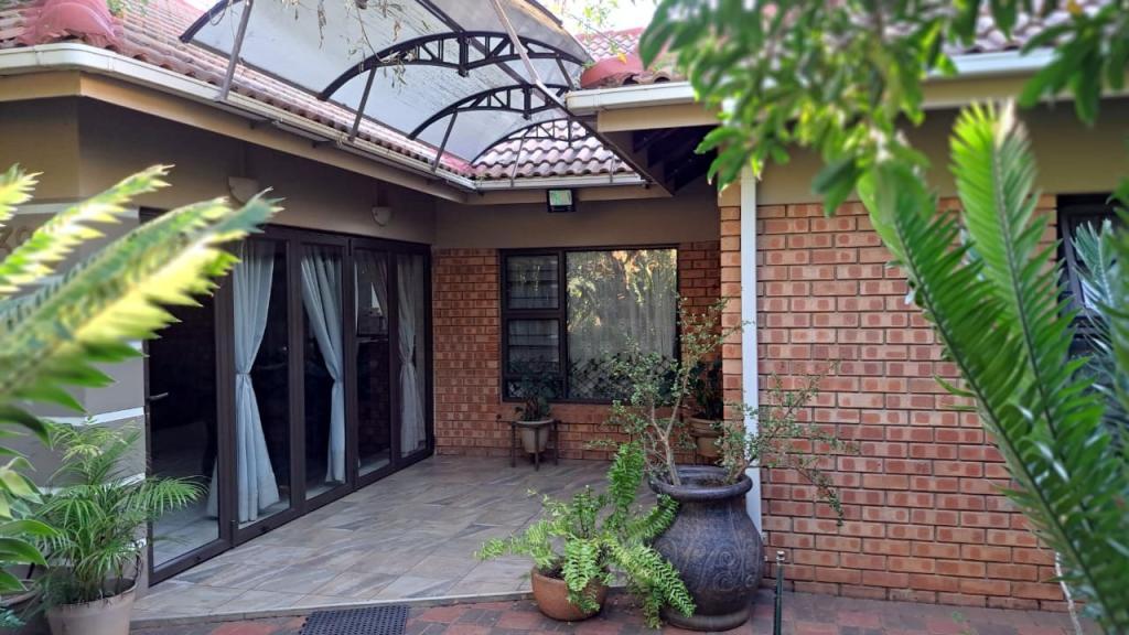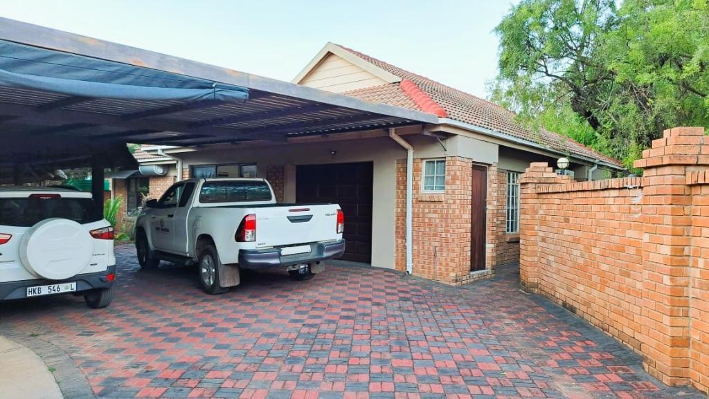 | Description: | Nestled in a popular safe complex, this stunning home offers privacy and comfort. The entrance is tucked away from the street, with gate and automated garage. The lush green garden is under irrigation with timer switch. Back-up water is provided with 3 tanks (2 x 2 500 l & a 1 000 l) Small, covered patio at the front entrance. The house will charm you from the moment you step into the spacious living area with down lights and wall to wall bookshelves This area flows into the modern kitchen, with breakfast nook, light cabinets, Defy Thermofan stove, extractor fan, granite tops and scullery 2 Guest bedrooms share a full bathroom The master bedroom will fit your king size bed and dressing table, with ample closets. En suite, full bathroom. Walled back-yard with lapa and braai. 1 Garage Carport for 4 vehicles Outside toilet. SPECIAL FEAUTURES Aluminium sliding doors with trelidor Security lights Beautiful linen cupboard in hallway 2 Air conditioners and ceiling fans Build-in cupboards. Outside toilet |