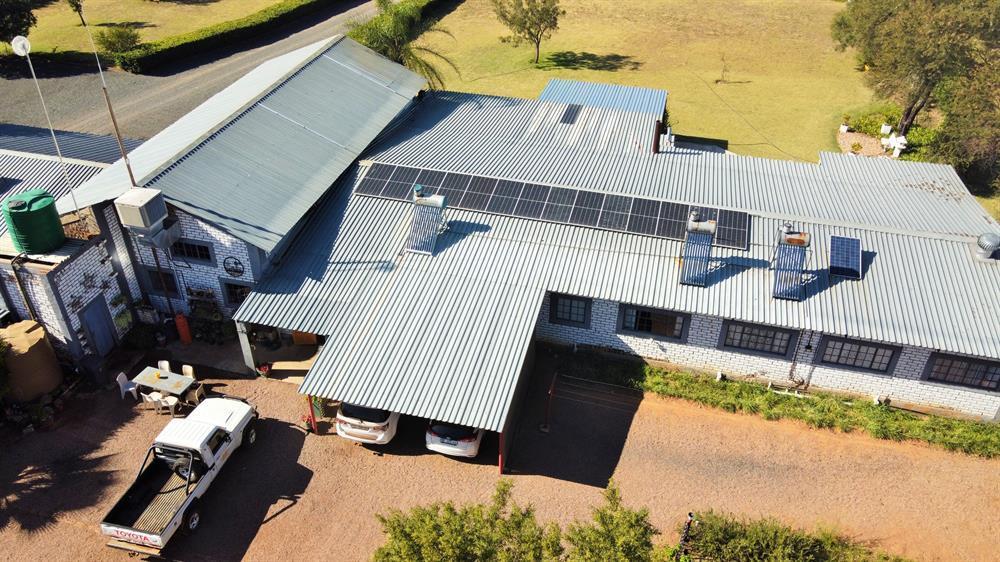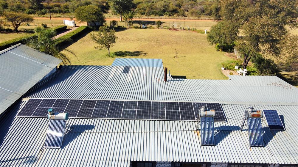Electricity:  Eskom.  3 Phase.  80% off the grid with 2 solar geysers, rest gas geysers, 14 x 450 watt solar panels, 6.5 kw solar system and 12 volt lights in home.