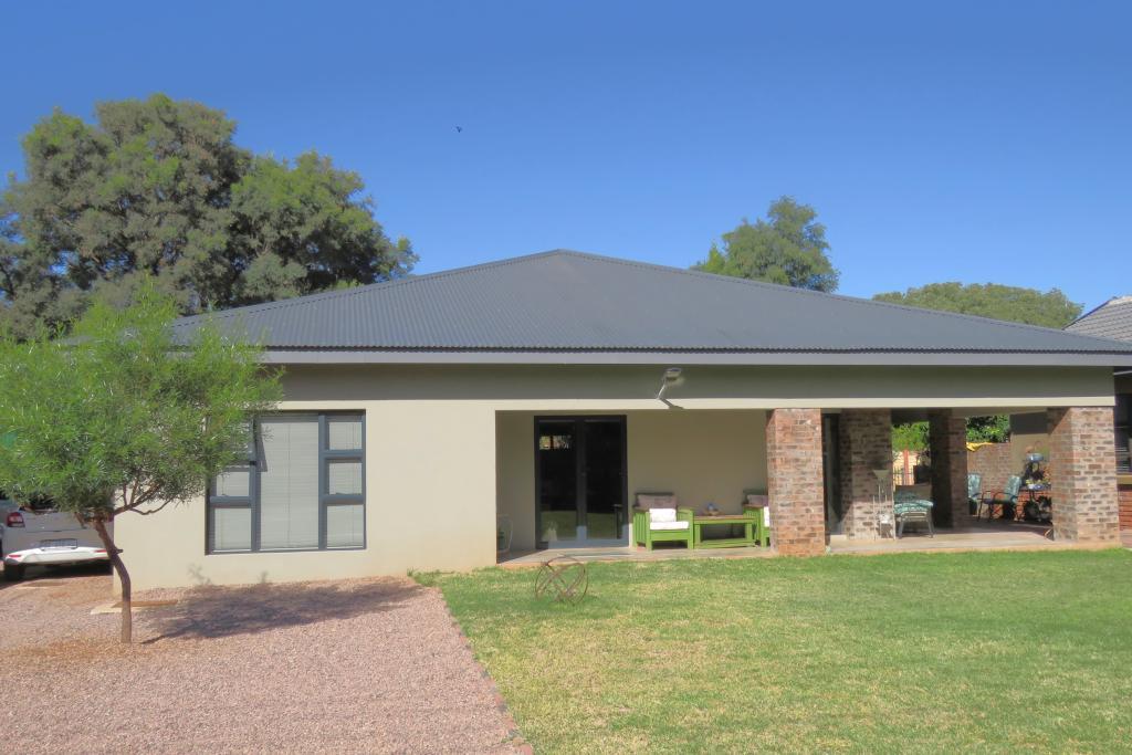 | Description: | Allow your extended family to stick together, without compromising on luxury, space or privacy. This large corner stand is walled with 2 entrances, each with automated gate. The garden is low maintenance, with flowing lawn between the dwellings. Each home is unique and well-planned for comfort and pleasing to the eye. open living areas and modern finishings. OTHER OUTSIDE FEATURES: Borehole with 2 x 10 000 litre water tanks. Irrigation. 3 Phase electricity. Pre-paid electricity for both dwellings Solar geyser for main house Both dwellings: stoep with isolated roof MAIN HOUSE Double garage (automated doors) Store room Outside toilet Braai area with boma next to large stoep Stoep with isolated roof. Air conditioning and roof fans. Cemcrete flooring Wooden blinds in most rooms, included in sale 2x spacious living areas Dining room Open kitchen with scullery, pantry and gas stove. Covered stoep next to kitchen and a courtyard Study Guest toilet Master bedroom with dressing room and en suite bathroom 2 Guest bedrooms Guest bathroom SECOND HOME Artistic, pleasing to the eye, but also carefully planned for maximum space and comfort. Lovely stoep / entertainment area on 2 sides, with isolated roof and sliding doors to living area Open plan lounge, dining room, kitchen with a self-service coffee bar to welcome guests. Pantry and scullery Guest toilet Study corner with storage shelves for linen, etc. Guest suite opens to patio. En suite bathroom. Master bedroom with air conditioner and en suite full bathroom. Double carport |
