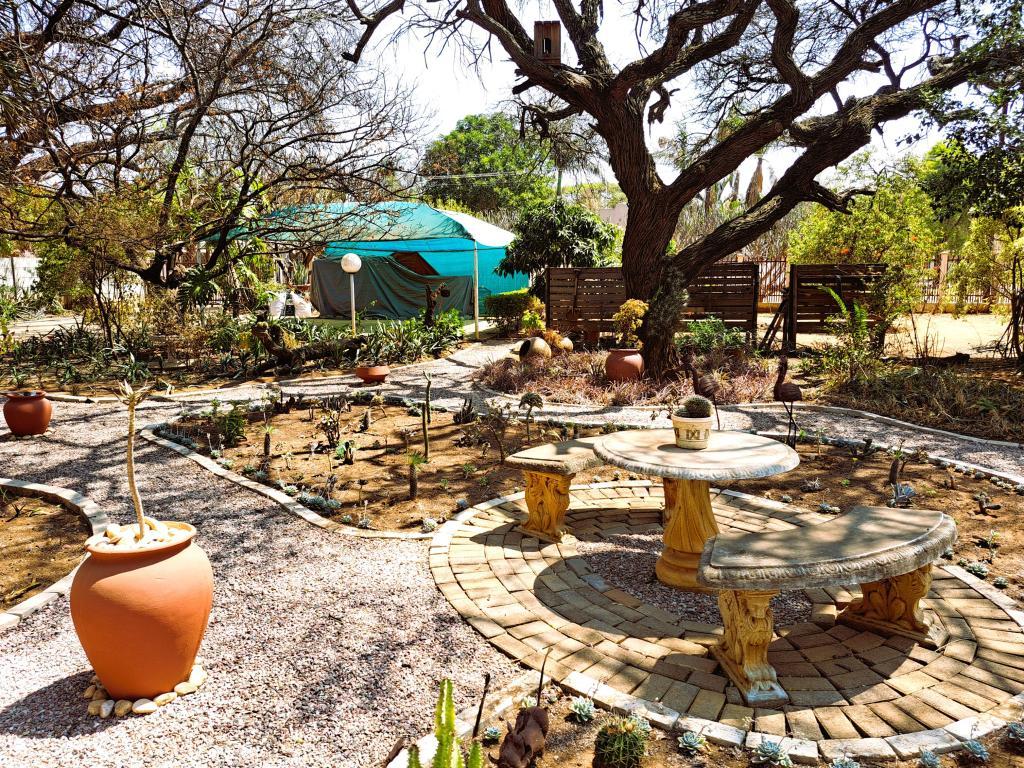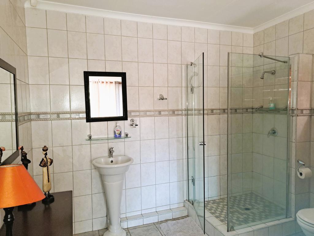 | Description: | This homely property is centrally located and offers good infrastructure with many possibilities. Parking: 2 entrances with 3 x double carports The garden is carefully planned with drought resistant scrubs & plants and with beautiful focus points. Partly irrigated 2 Water tanks and pressure pump Lovely & spacious lapa with a build-in braai and anthracite stove to entertain guests Laundry. Outside storeroom and toilet. Small shed Palisade and walls around erf. House: Front porch. Lounge & dining room Kitchen with scullery 3 bedrooms in main home Guest bathroom with bath & shower Main bathroom en suite. 2 Guest suites / family rooms / garden flats with air conditioning and large bathroom. One also wheelchair friendly. |