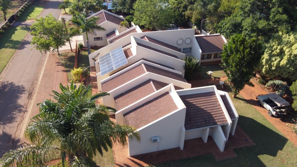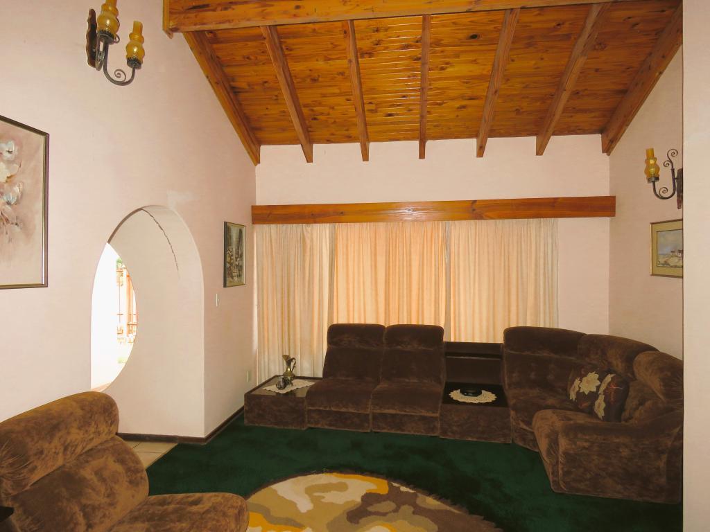 Special features include: 3 Garages, double length lock-up carport and extra parking space. 10 KVA inverter with12 solar panels and 2 lithium batteries keeps you mostly off the grid Alarm system, burglar bars and security gates. perimeter walls and palisade fencing. Lawn and easy-care garden Huge entertainment room, open with sliding door to covered patio and pool