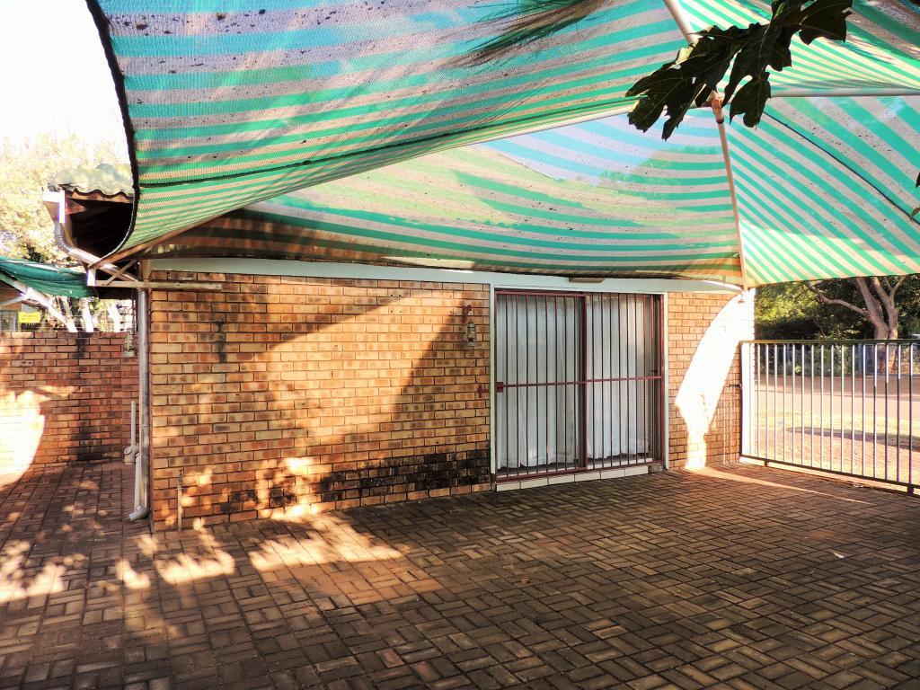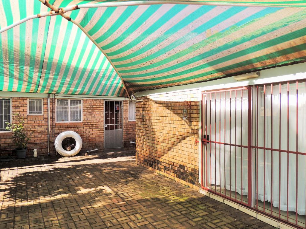 | Description: | This practical sectional title offers many uses. Features: Undercover lock-up parking for 2 cars Bachelor’s flat with small bathroom Tiled floors, wooden corniches, burglar bars and security gates. Spacious kitchen with beautiful oak cupboards. Open plan lounge, dining room Patio overlooking walled courtyard. Paving at the back as well as entrance. Two bedrooms with bic Toilet and full bathroom. |