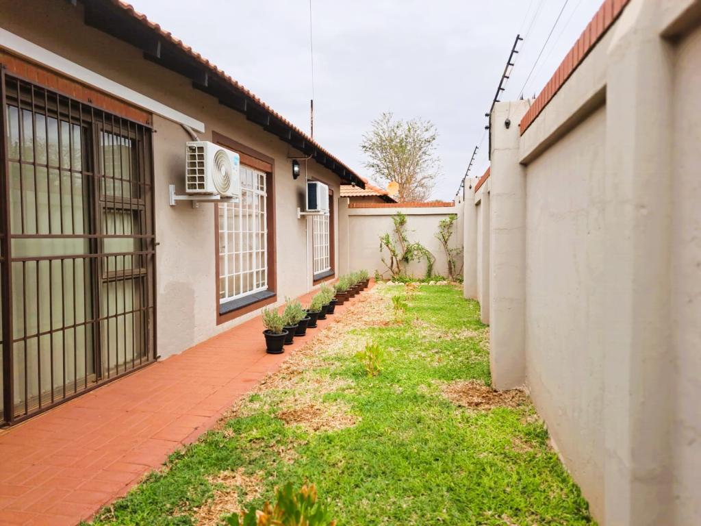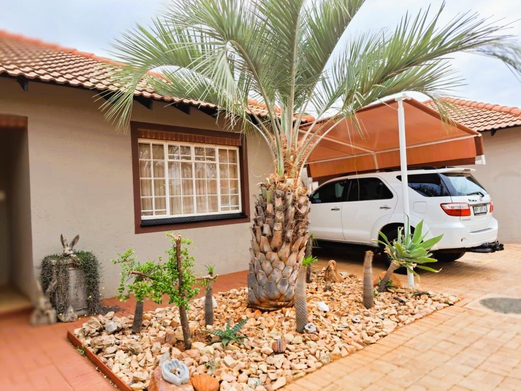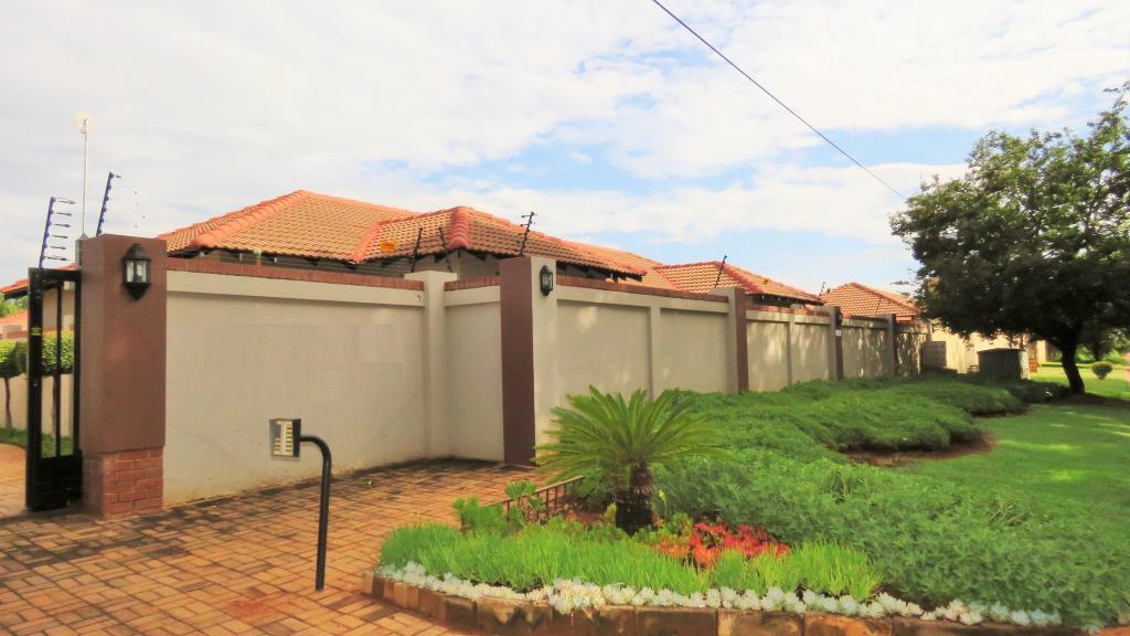 | Description: | Feel at home and safe in this charming community with 8 lovely townhouses. Features include automated gate with phone access, perimeter walls and electric fence. The building, size 165 square m, is spacious and comfortable. The double garage is automated and with door to house. Also, with laundry facilities and ample storage space. This home boasts with 6 solar panels, 5 KVA inverter and lithium battery. The solar system is connected to all power outlets, except for the stove, geyser and oven. The erf is walled with paving and lawn Courtyard with basin and clothesline A 2200 litre water tank with pump keeps the water flowing. Properties inside: Tiled floors, roof fans and air conditioning in master bedroom and family room Spacious, open plan lounge and dining area Family room with sliding doors on 3 sides This area connects with the lovely entertainment area, with canvas sides Kitchen with granite tops, electric hob and eye level oven. Master bedroom en suite with build-in cupboards, air conditioning & roof fan Second and third bedroom with build-in cupboards and roof fan Guest bathroom Blinds and curtains included in the sale. Complex levies include: complex and security maintenance, insurance on building, weekly gardener and refuse removal. Take a step to joy & independance! |